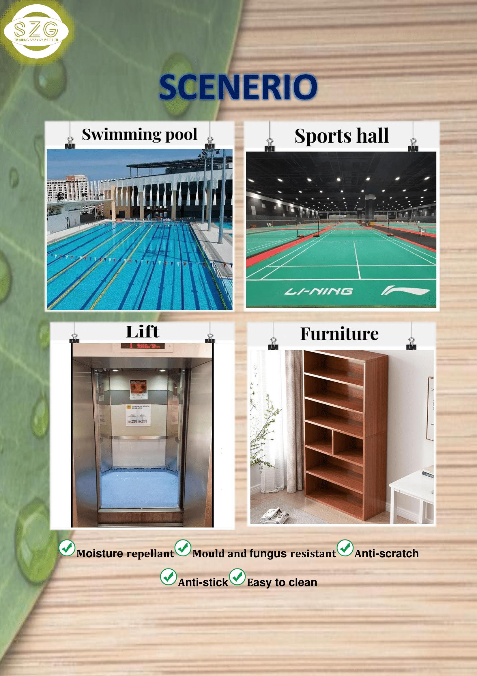 This coating is suitable for indoor tiles, glass, metal, cement walls, painted surfaces, etc.