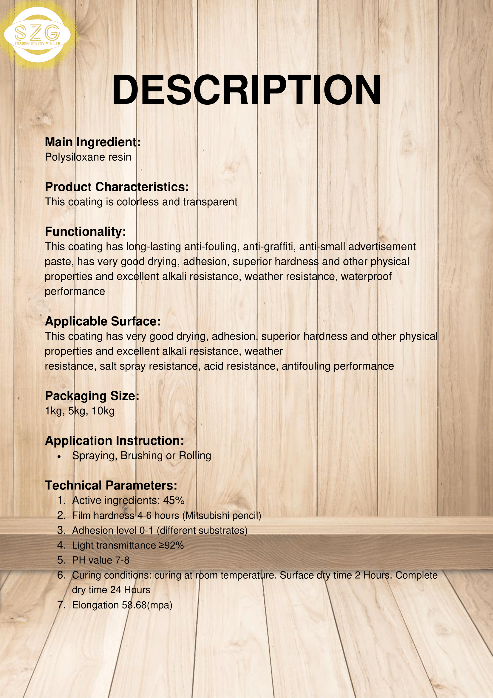 This coating has very good drying, adhesion, superior hardness and other physical properties and excellent alkali resistance, weather