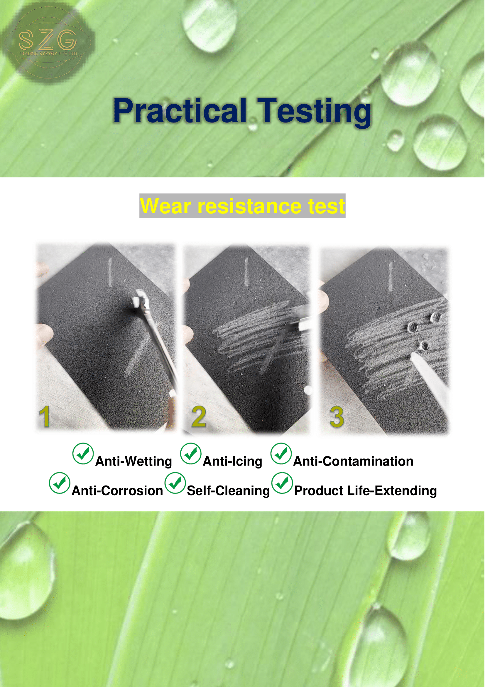 - After spraying, it will stand for more than 1 hour. After the surface solvent volatilizes, it will have super hydrophobic effect.
